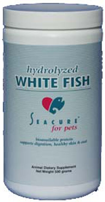 Made from Pacific whiting caught in the Pacific Northwest, Seacure for Pets is a predigested protein that helps nourish growing puppies, adult dogs, and any animals that have digestive issues, like sick or elderly dogs. Seacure contains beneficial omega-3 fatty acids and other fish nutrients, as well as amino acids and peptides (the fundamental building blocks of protein!) as its primary healing ingredients.